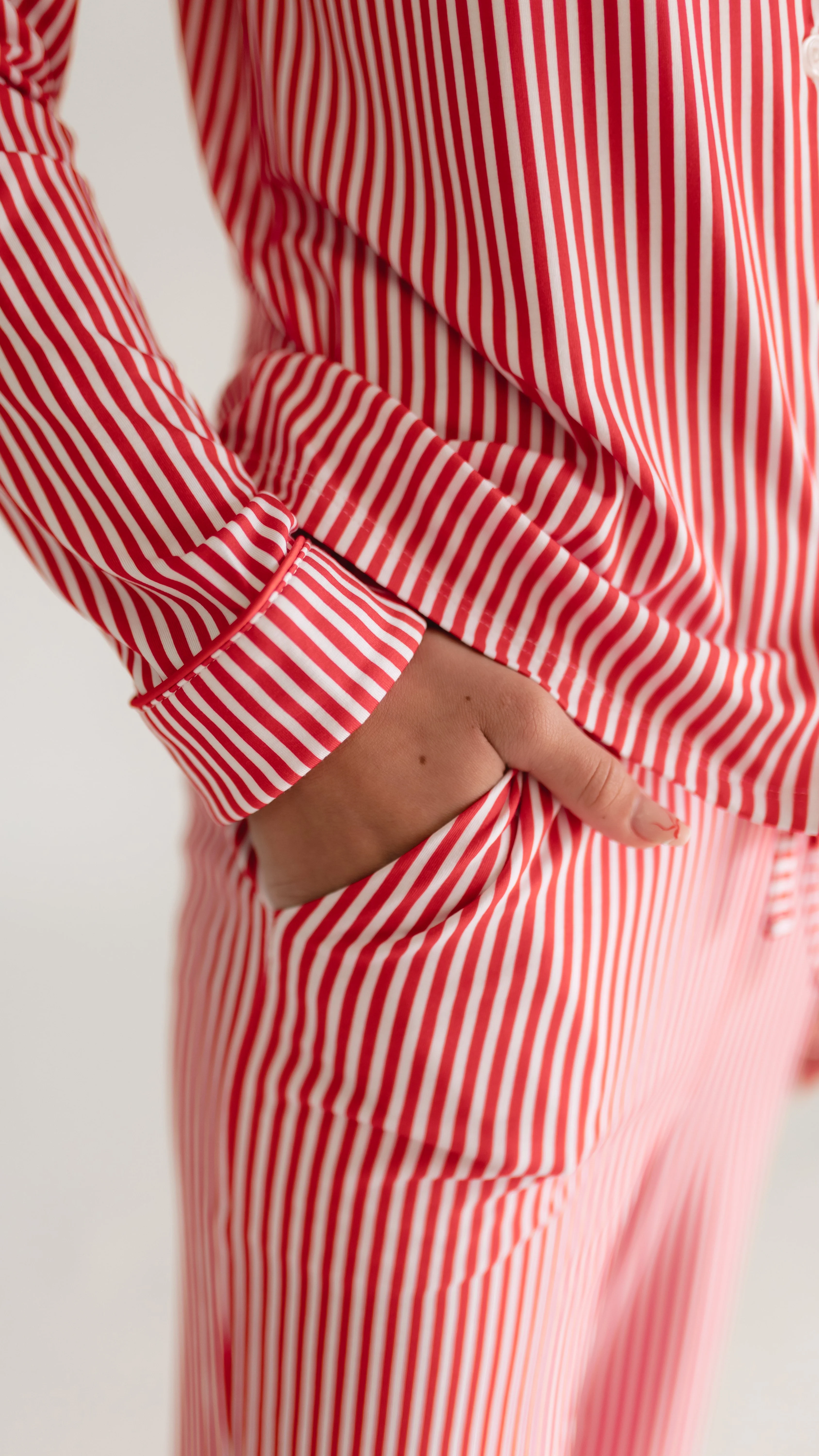 Girl's Button Up Set in Red Pin Stripes