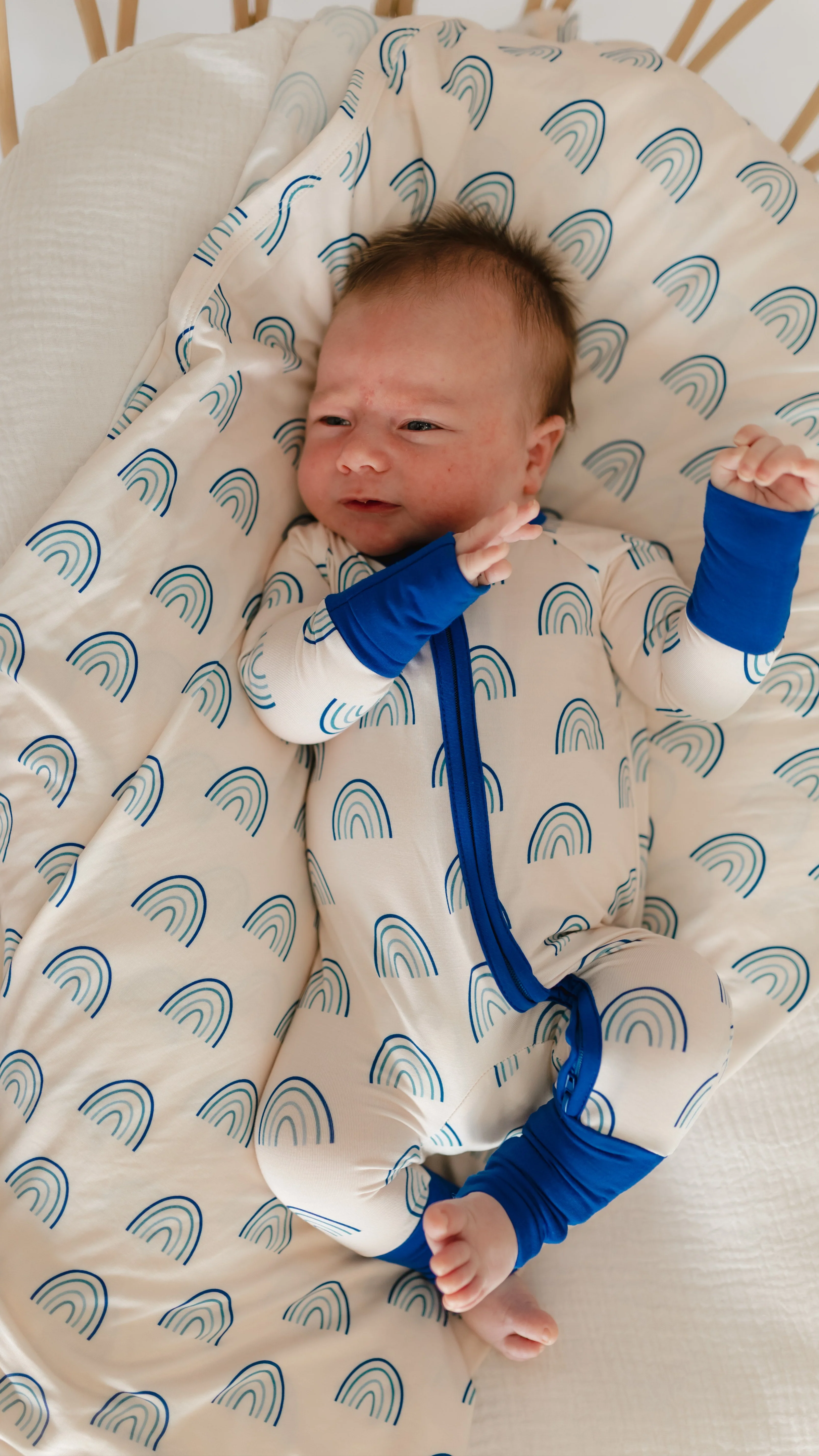 Our baby rompers are made from 95% viscose from bamboo and 5% spandex, offering a dreamy-soft feel that’s breathable, stretchy, and gentle on delicate skin. Designed to grow with your little one, these rompers are cozy enough for play and snug enough for sleep—meeting all CPSC safety standards for tight-fitting infant sleepwear.